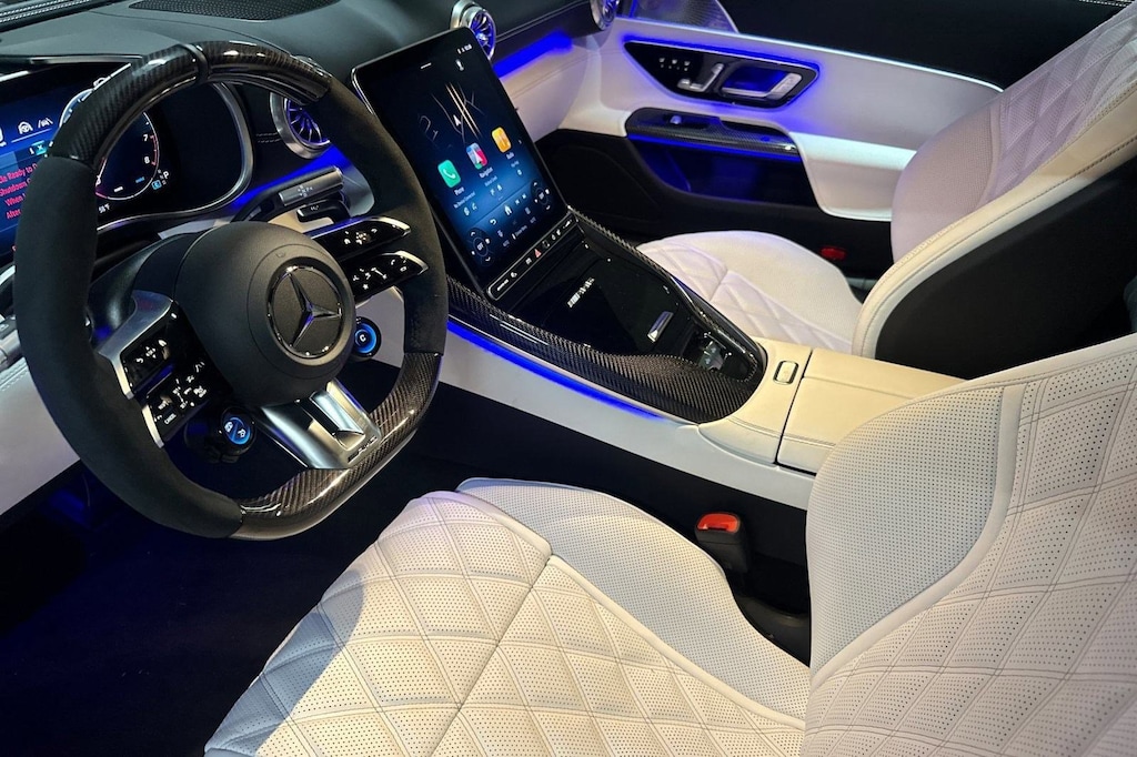 Base MSRP excludes transportation and handling charges, destination charges, taxes, title, registration, preparation and documentary fees, tags, labor and installation charges, insurance, and optional equipment, products, packages and accessories. Options, model availability and actual dealer price may vary. See dealer for details, costs and terms. AMG® and 4MATIC® are registered trademarks of Mercedes-Benz Group AG. Android Auto is a trademark of Google LLC. Apple CarPlay® is a registered trademark of Apple Inc. harman/kardon® and Logic 7 are registered marks of Harman International Industries, Incorporated Burmester® is a registered trademark of Burmester Audiosysteme GmbH, Berlin, Germany Bluetooth® is a registered mark of Bluetooth SIG, Inc.