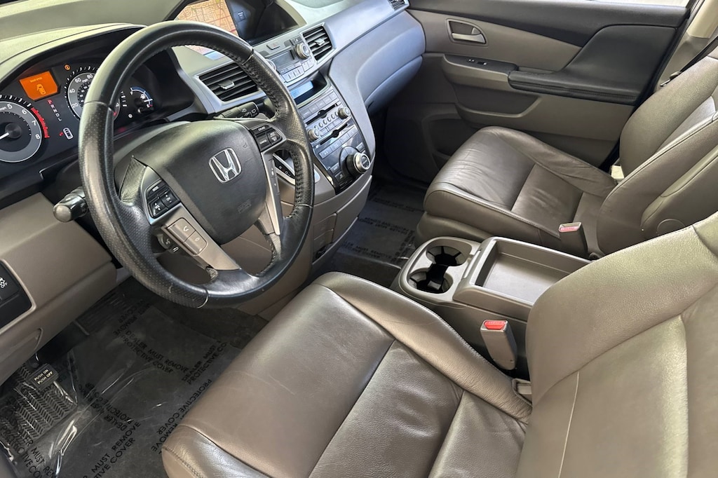 XM radio w/90-day subscription, Wide-mode adjustable 2nd-row seats -inc: leather trimmed outboard seats, multi-function center seat, "walk-in" feature, armrests, head restraints, Warning lights -inc: low-fuel, low-oil pressure, door/tailgate open, passenger-side airbag-off, corner & back-up sensor, Vehicle Stability Assist (VSA) w/traction control, Variable pwr rack & pinion steering, Variable Cylinder Management (VCM), Tri-zone automatic climate control -inc: humidity control, air filtration, Tire pressure monitoring system, Tilt & telescopic leather-wrapped steering wheel -inc: wheel-mounted audio, navigation, phone & cruise controls, Side-impact door beams. This Honda Odyssey has a dependable Gas V6 3.5L/212 engine powering this Automatic transmission.
