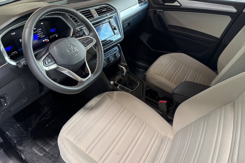 Wheels: 17" 2-Tone Machined Twin 5-Spoke Alloy, Wheels w/Locks, VW Car-Net Safe & Secure 5-year Emergency Sos Capability, Trip Computer, Travel Assist (semi-automated driving assistance), Transmission: 8-Speed Automatic w/Tiptronic, Transmission w/Oil Cooler, Tires: 17" All-Season, Tailgate/Rear Door Lock Included w/Power Door Locks, Strut Front Suspension w/Coil Springs. This Volkswagen Tiguan has a dependable Intercooled Turbo Regular Unleaded I-4 2.0 L/121 engine powering this Automatic transmission.